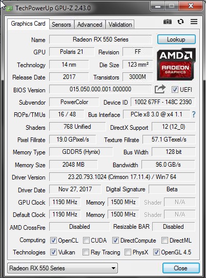 2) спустя пару лет решил обновить драйверы системы всей и вот тут что-то пошло не так ни AB, ни Gpu-z, ни бесов адреналин - карточку не видят, хотя драйвер встал и в диспетчере устройств она имеется. никак не влияет на воспроизведение 3д, в HWinfo вижу температуру и обороты, однако вышеуказанные программы не опознают RX550 НИКАК скринчики приложены в предыдущих сообщениях
