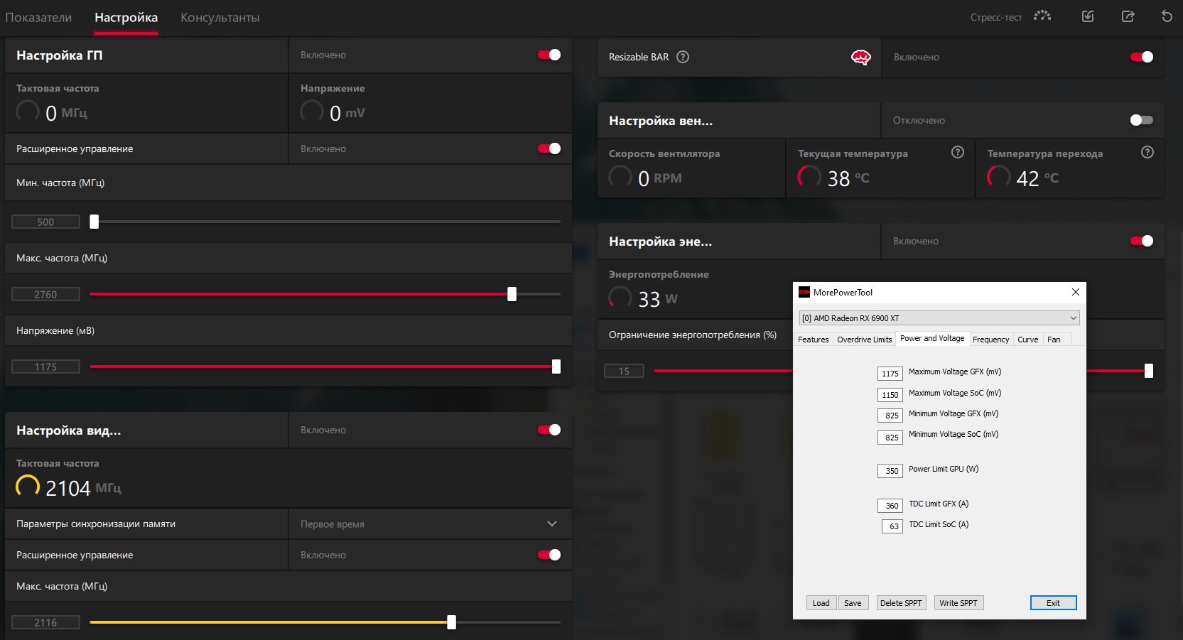 этих настроек достаточно, чтобы убрать инпут лаг из-за энергосберегаек/простоя карты в лёгких режимах. Частоты конечно можно покрутить в зависимости от экземпляра карты, это моя "летняя" настройка 6800xt для шутанов овер 200фпс
