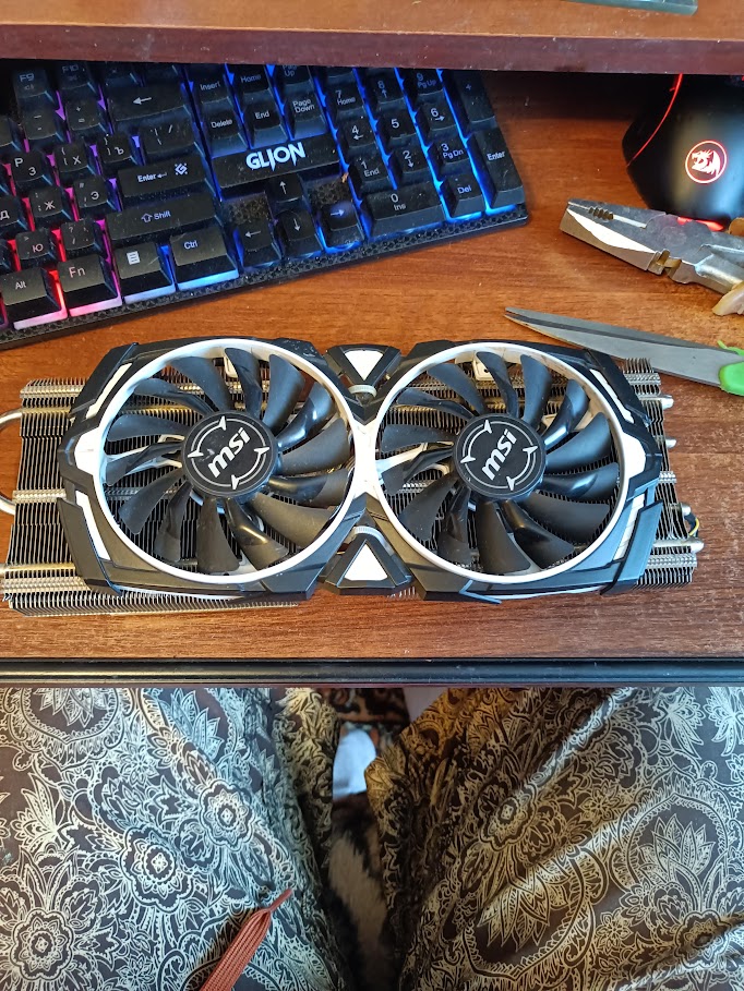 Кстати, недавно отхватил также за 500 радиатор от Inno 3D 1080Ti. Прикрутил вертушки от той же дохлой MSI Armor RX470.