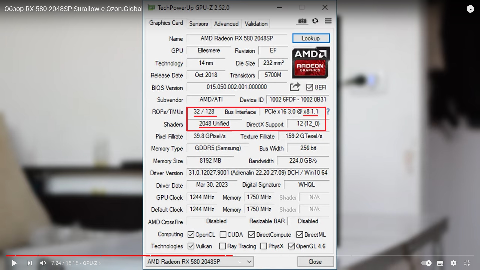 Руфусс, 580 2048sp это 570 и есть, у него на скрине же и видно. В 580 должно быть ROPs/TMUs 32/144 и 2304 ALU. Нормальная 580 и не будет называться 2048sp.
