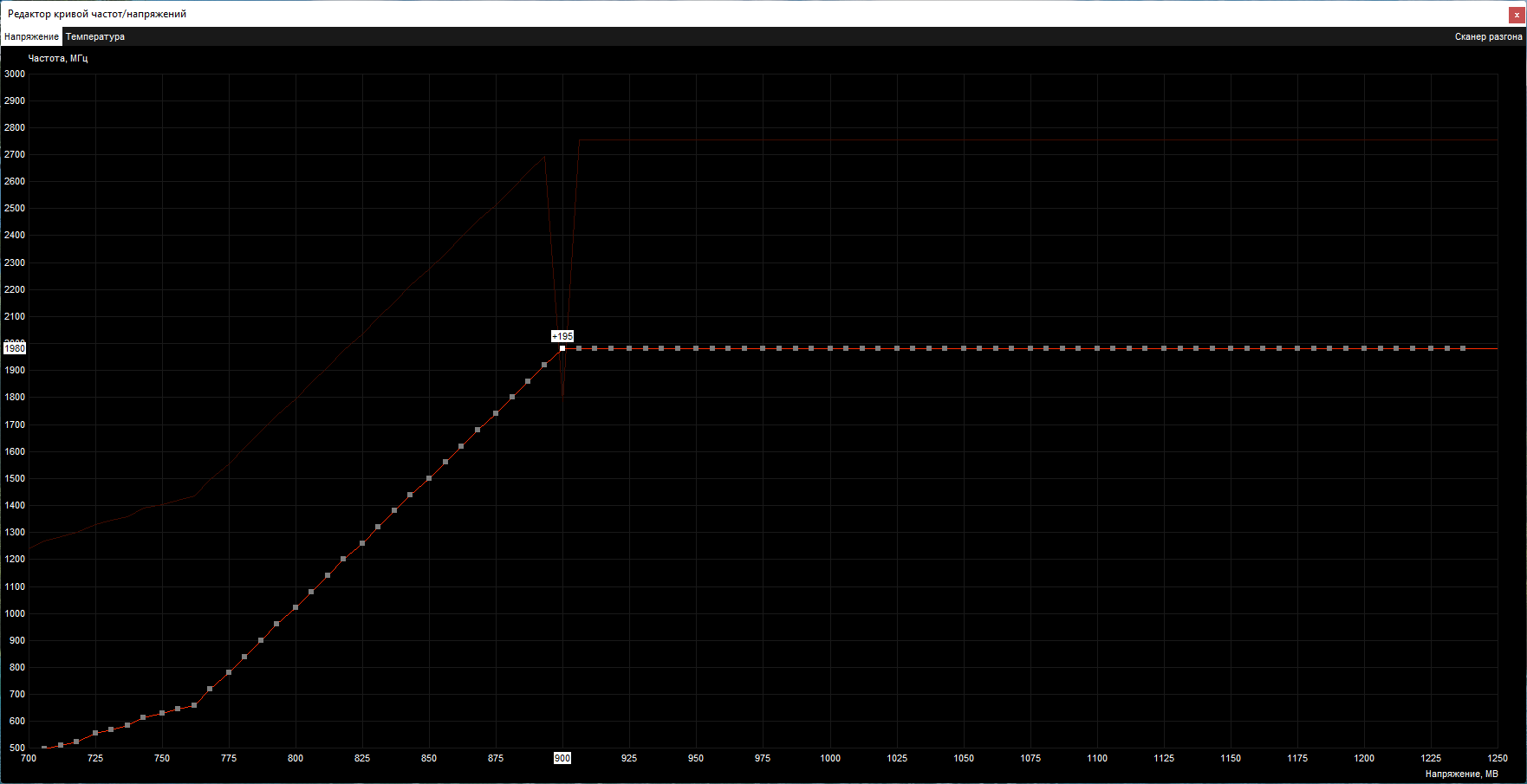 Не греби по одну гребёнку все карты. У меня на 3070 Ti абсолютно стабильны 1950@0.950 и даже 0.925. Пробуй 1900@0.900, если тебе прям вот нужно именно это напряжение, под него и подгоняй.