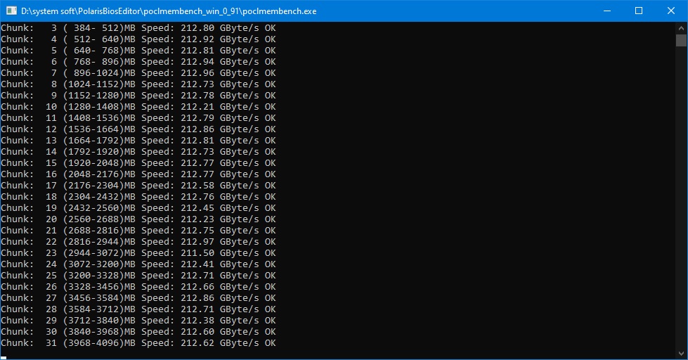 Если сразу после применения профиля запустить poclmembench, то видно будет снижение ПСП. Если сразу после применения профиля запустить poclmembench, то видно будет снижение ПСП. Помоему и в штатной разгонялке так же. Ну было например 200 GByte/s, чуток разгоняешь память, применяешь настройки - показывает 190, перезагружаешь и тогда уже 210.