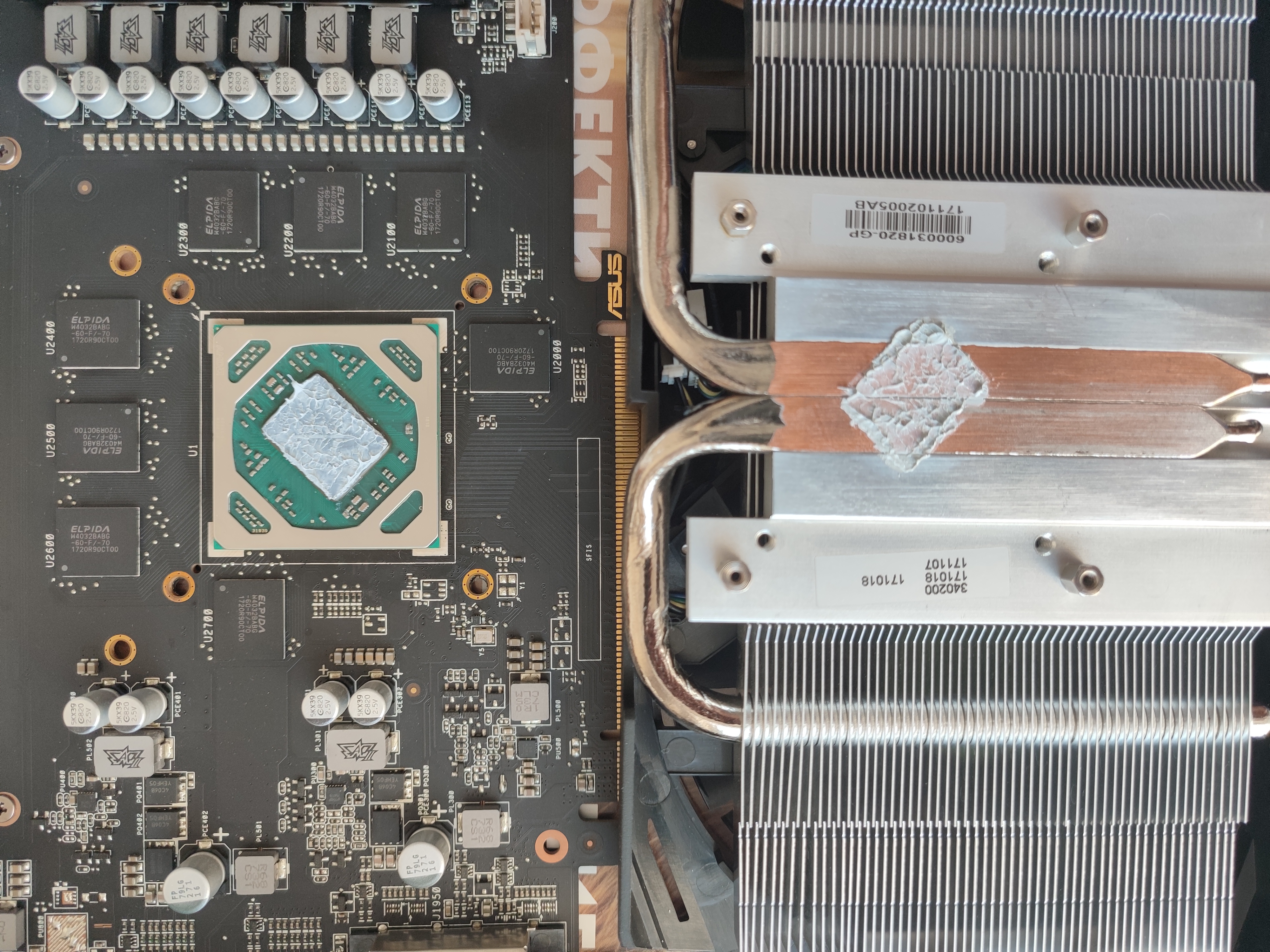 Да, на эту карту нужен фазовый переход или очень густая термуха типа фехонды.. Там проблема в том что трубки выпирают над общей плоскостью пятки из за чего часть чипа грубо говоря висит в воздухе..