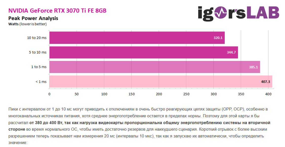 Там просадки по 12v довольно приличные на 1-м скрине + проблемы с мышью и звуком, пусть это даже не 100% проблема в БП, с другим проверить не помешает. И в дальнейшем лично я за замену т.к. запаса действительно мало + есть ещё пиковая нагрузка, мониторится только осциллографом, вот на примере 3070ti FE, 407W в пике: