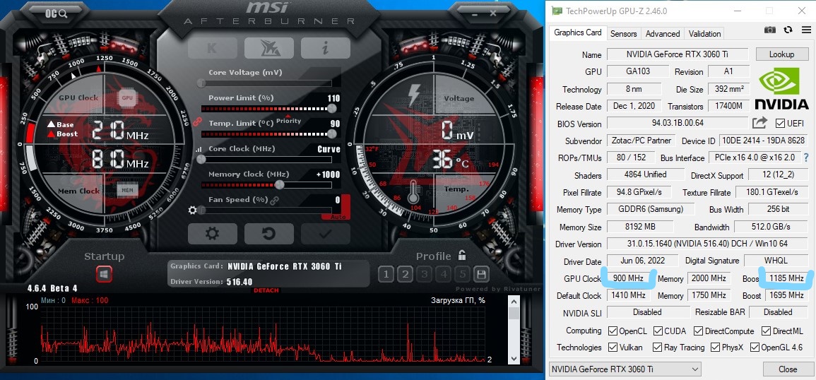 Можете подсказать, почему CPU-Z отображает неверные частоты, т.е не те которые выставлены в Afterburner ? Карта в под нагрузкой Afterburner показывает нормальные частоты, т.е 1950mhz/0,925mv. Карточка Zotac rtx 3060 ti с gpu 103-200.