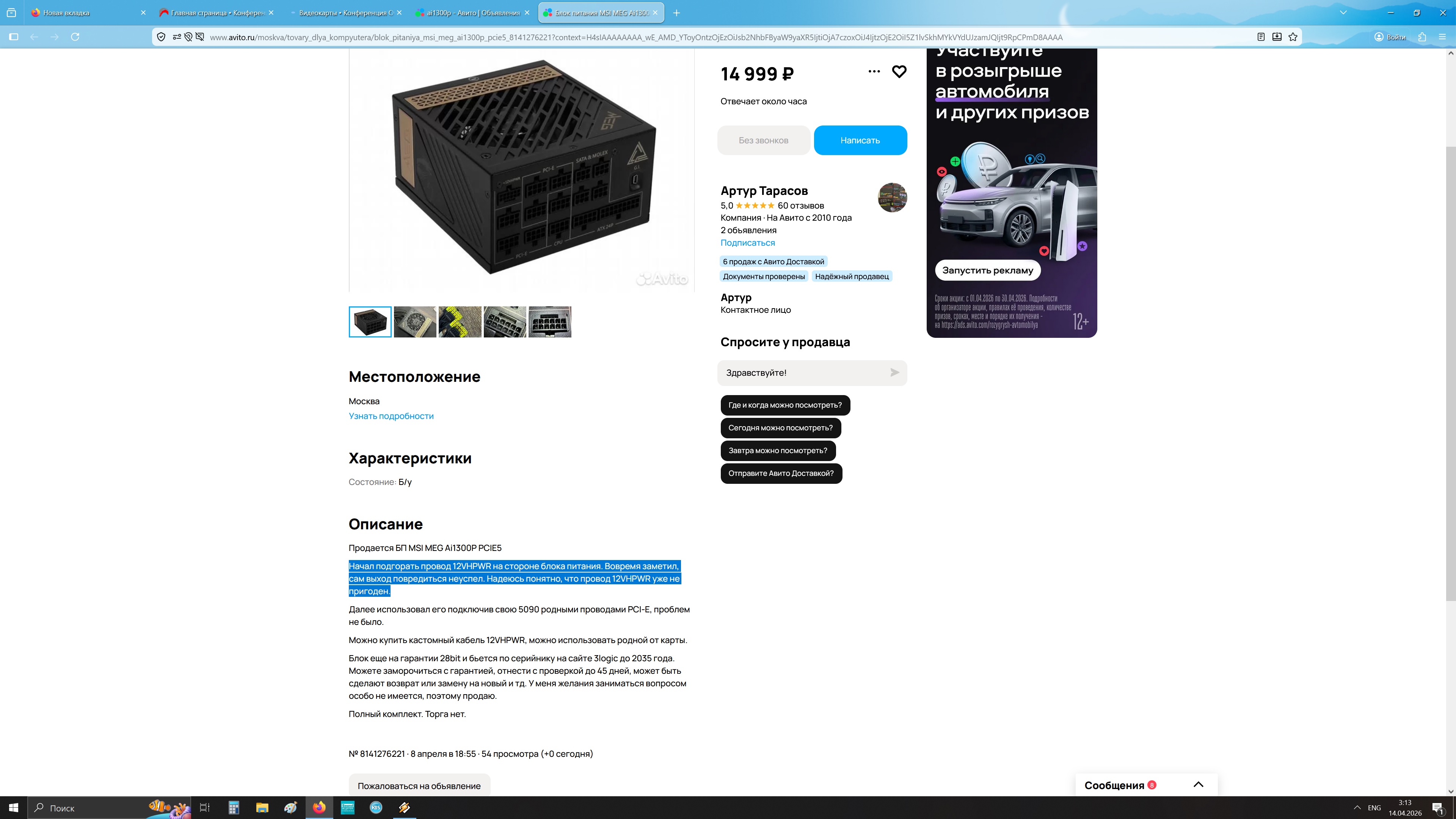 А Вы про 800ватт...На 1 разъём... И это, за наши кровные... Мне тут душещипательную историю рассказали... Если что, в лс... По поводу 600-800 ватт, пусть ставят 2 разъёма. Имхо.