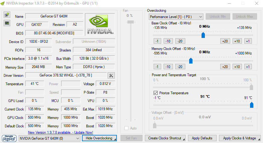 Друзья, проблема после перехода на Win10. Ранее на Win 8.1 разгонял свою мобильную 640M Инспектором до 850 ядро командой Inspector.exe -setGpuClock:0,1,850 -setMemoryClock:0,1,900 -forcepstate:0,0 Сейчас в 10-ке эта команда ядро не разгоняет, вручную ползунком в Инспекторе только на 135 Мгц можно, дальше не идет, что не так с командой? пс: с разгоном памяти все ок, а вот ядро нет, и кому верить?