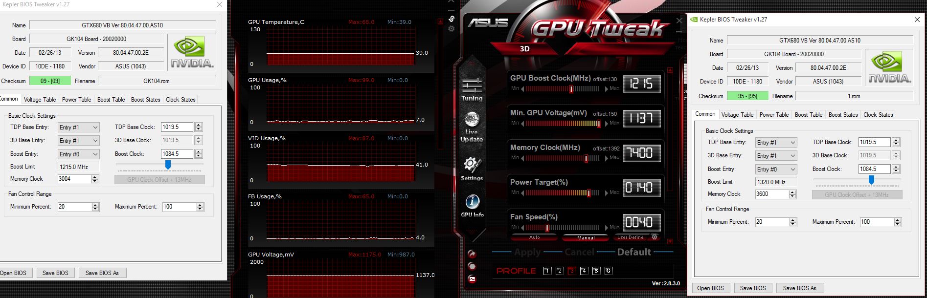 Редактирование биос Kepler (680\670GTX) Качаем: 1. Kepler Bios Editor v1.1 (приведен на картинке там все понятно, редактируем сохраняем) 2. Nvflash 5.127 (версия поддерживает Kepler)