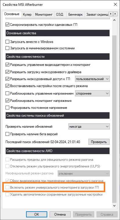 Включи в настройках AB режим универсального мониторинга загрузки ГП