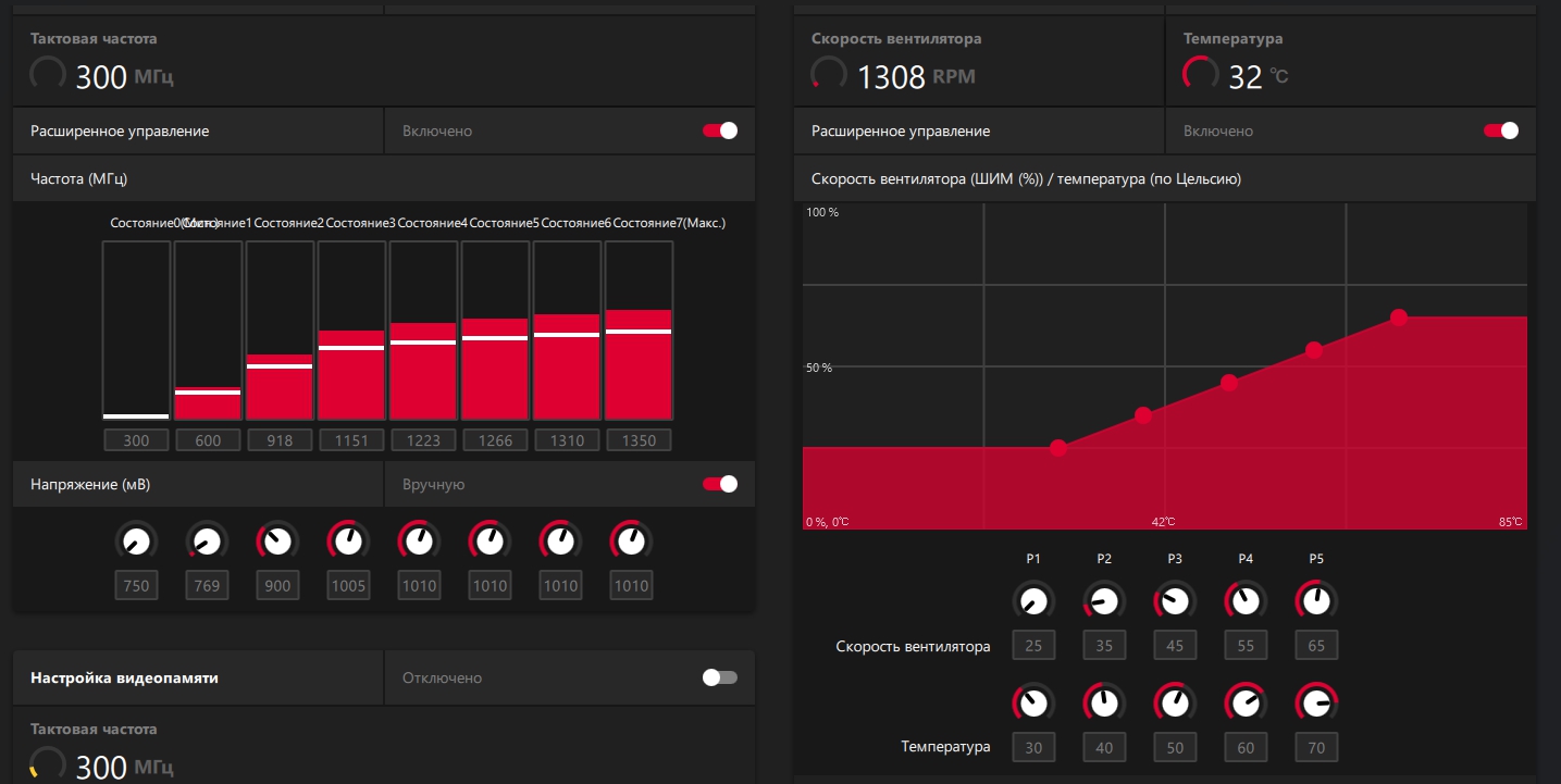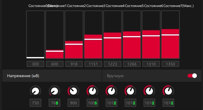 Q: По мониторингу напряжение на GPU немного отличается от установленного. A: Реально напряжение выставляется кратно 6.25 и округляется в большую сторону. То есть, если Вы выставили 1137, то реально у Вас будет 1137.5, а если выставили 1138, то уже реально будет 1143.75 мВ.