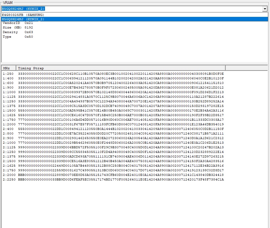 H5GQ8H24MJ For 32+MH/s, memory clocks must be 2200+MHz, do not set these clocks as stock in bios! 2250/233 Гб NEW Hynix, this is only for 8GB cards!! 777000000000000022AA1C0010626C46C0551017BE8E060C006006000C081420EA8900AB030000001B162C31C0313F17