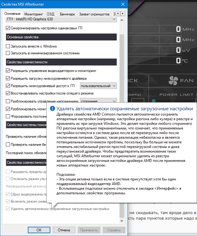 Имеешь в виду жёстко обесточить, чтобы софт АМД настройки в дефалт сбросил? Это АМД-шные дрова так работают. В Afterburner тоже есть пара пунктов которые надо включить когда видеокарта АМД