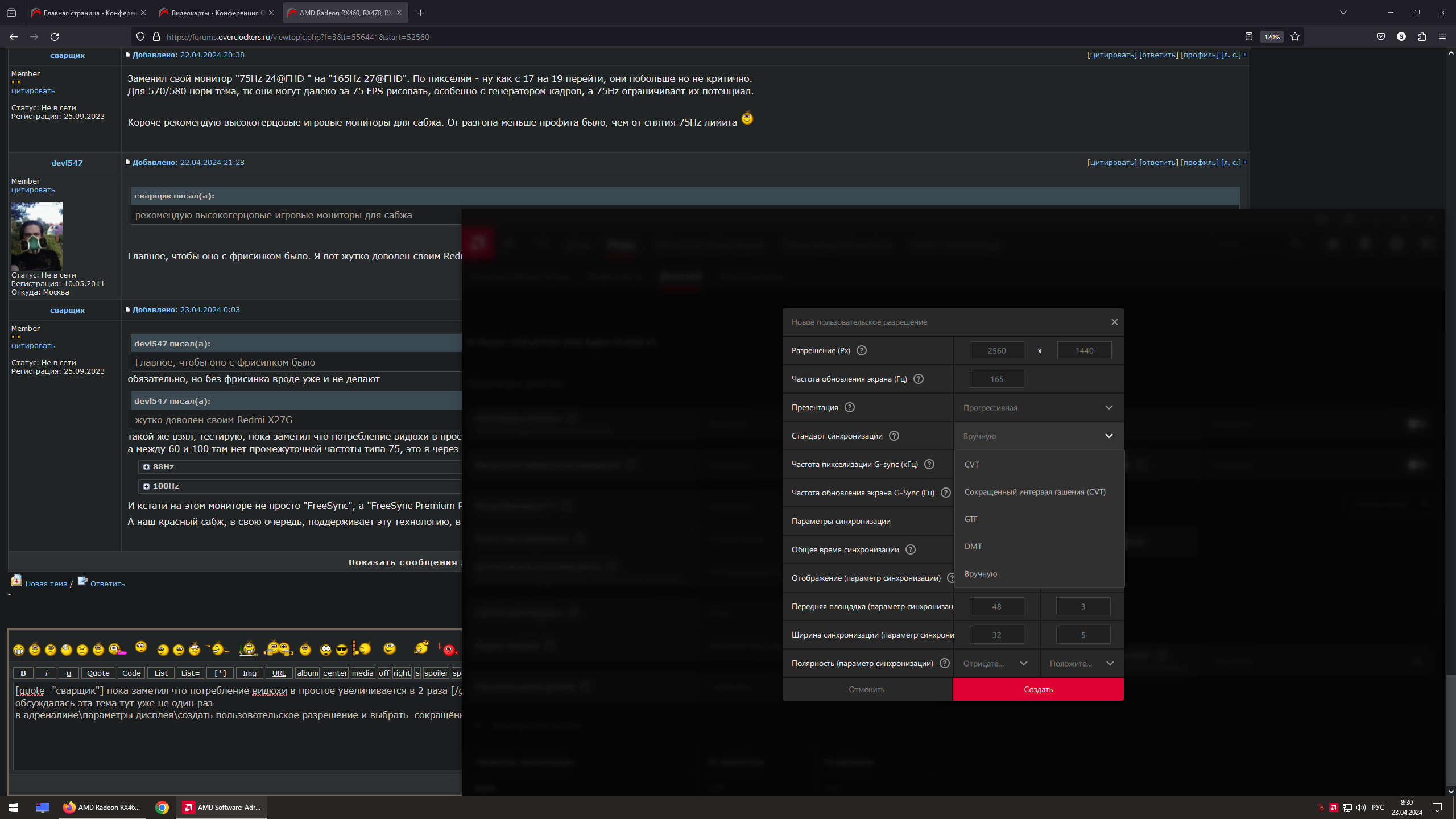 Для 570/580 норм тема, тк они могут далеко за 75 FPS рисовать, особенно с генератором кадров, а 75Hz ограничивает их потенциал.