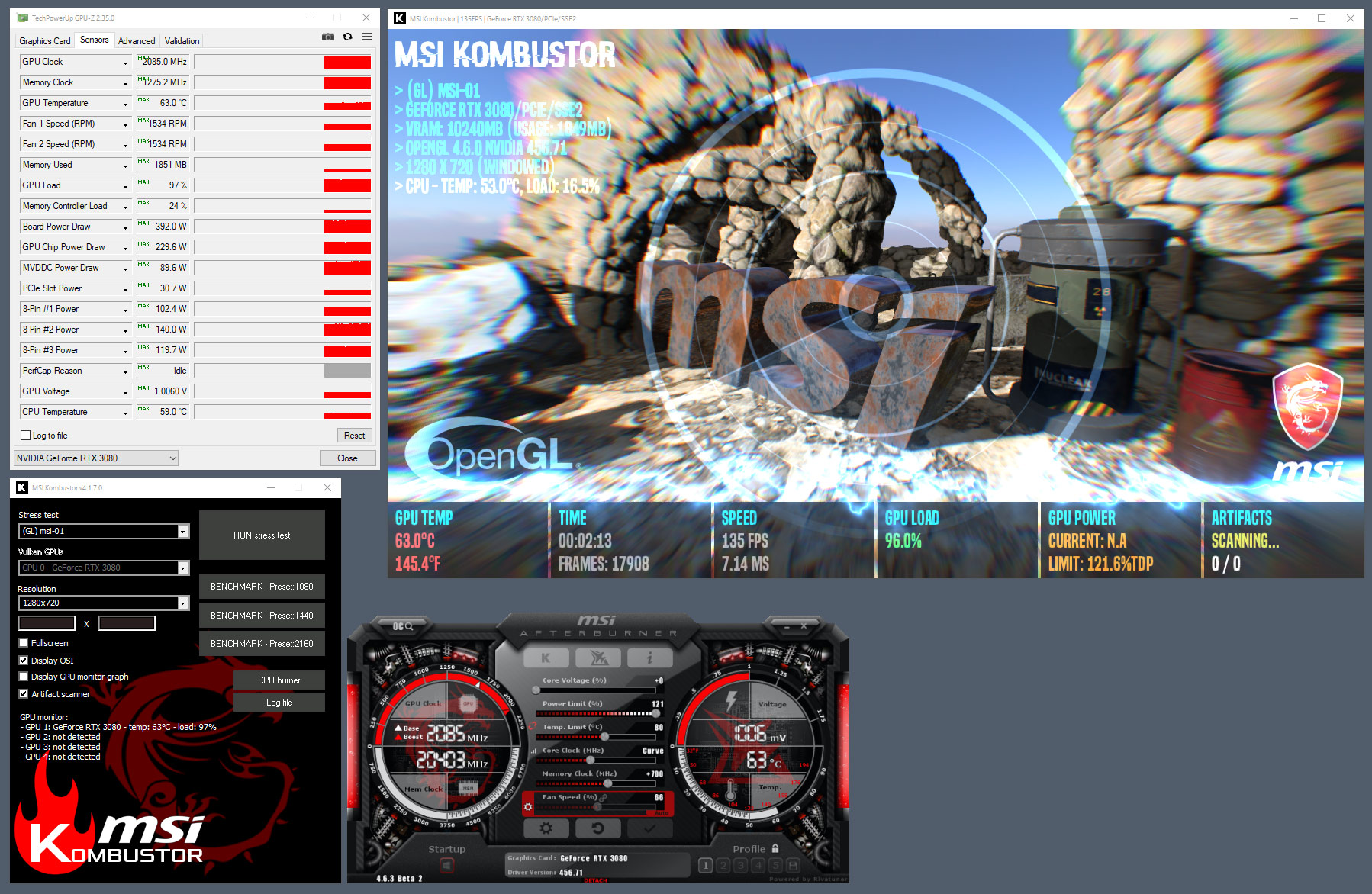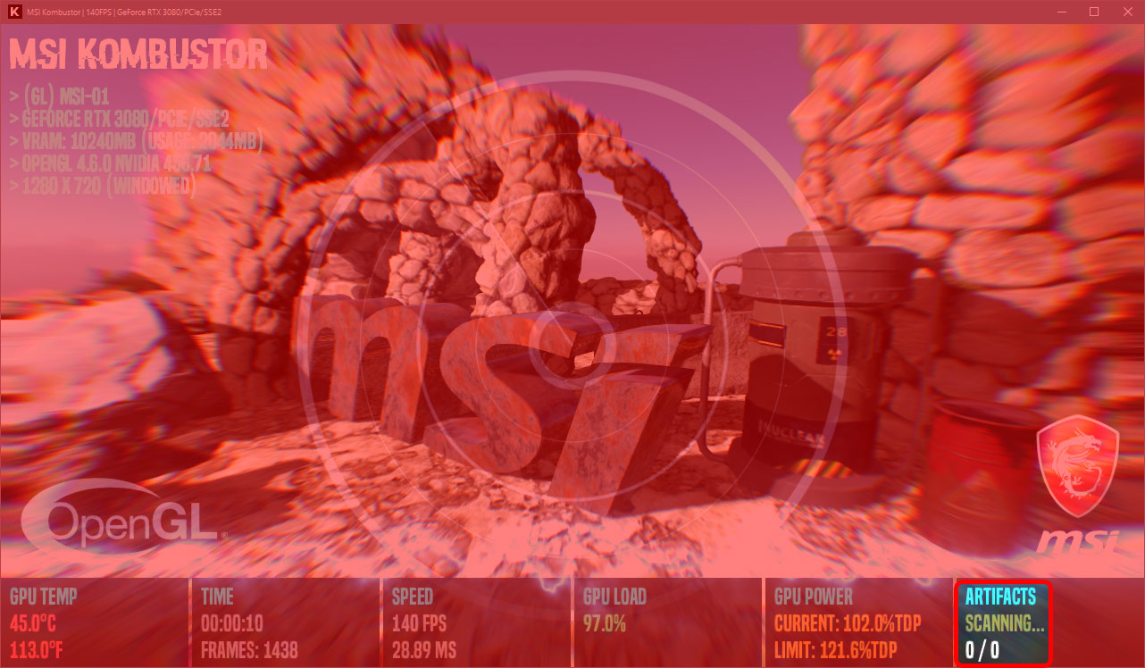 Камбустор погонял с твоими настройками 8 минут, артефактов не было найдено. Только он слабенький какой-то, всего 171 ватт выжрало, тогда как фурмарк до 235 кочегарит: https://ibb.co/h9DFBjt