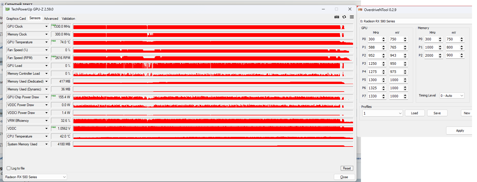 Q: Постоянно скачет частота памяти (или не снижается) в простое. A: При броузинге интернетов используется аппаратное ускорение - повышаются частоты чипа и памяти на некоторое время. Так же если у вас ДВА монитора, то частота памяти не будет снижается. Аналогичная ситуация для 144Гц мониторов.