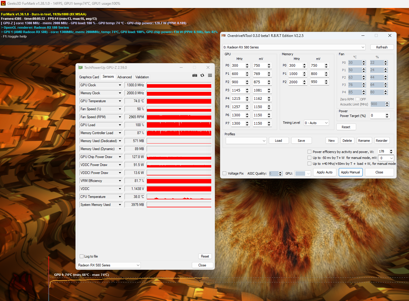 Q: По мониторингу напряжение на GPU немного отличается от установленного. A: Реально напряжение выставляется кратно 6.25 и округляется в большую сторону. То есть, если Вы выставили 1137, то реально у Вас будет 1137.5, а если выставили 1138, то уже реально будет 1143.75 мВ.