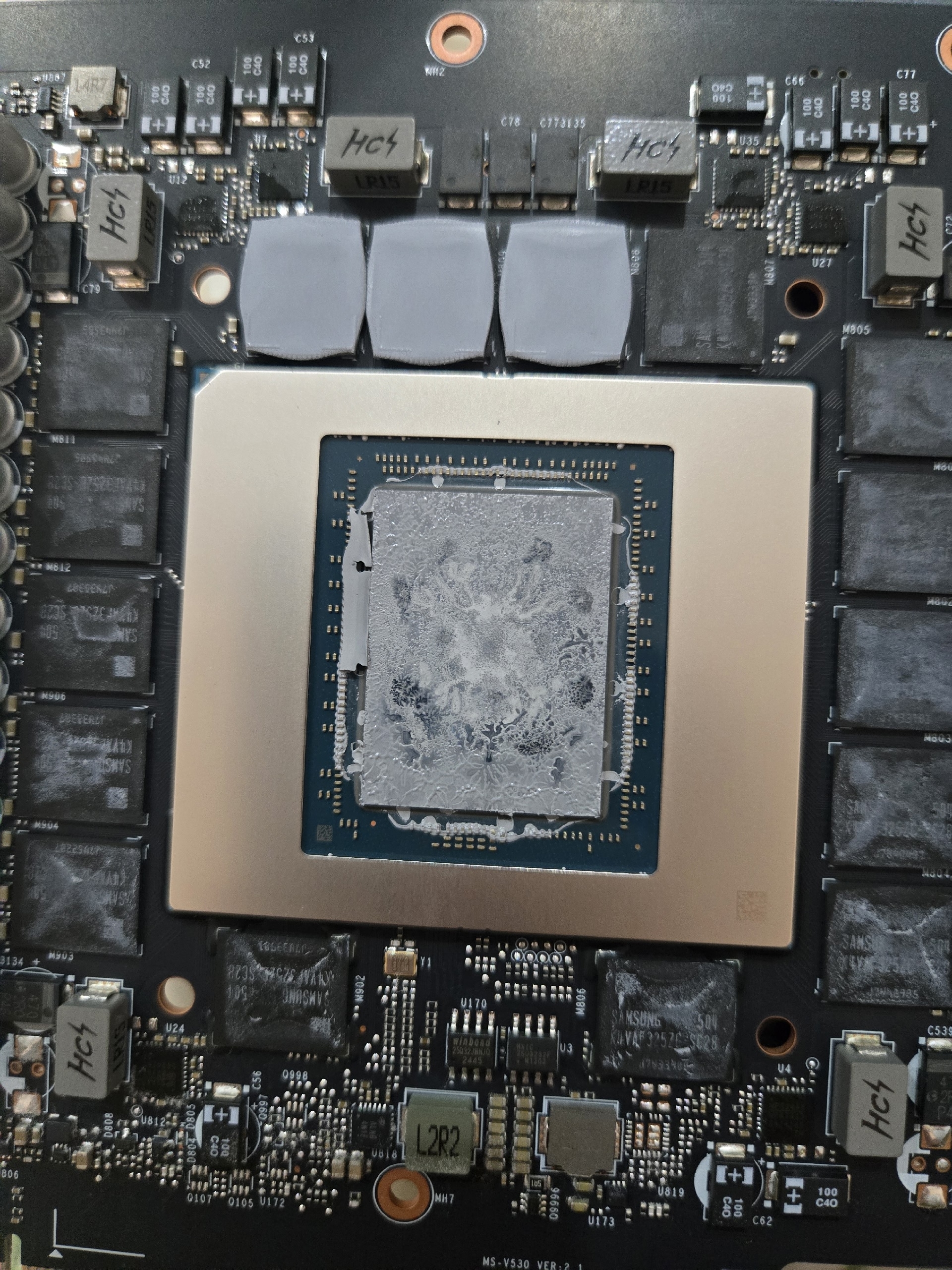 Вскрыл от делать нехрен (буквально) свой суприм и был приятно удивлён, что вместо термопасты там что-то похожее на PTM7950 В остывшем виде консистенция очень плотная, почти твердая.