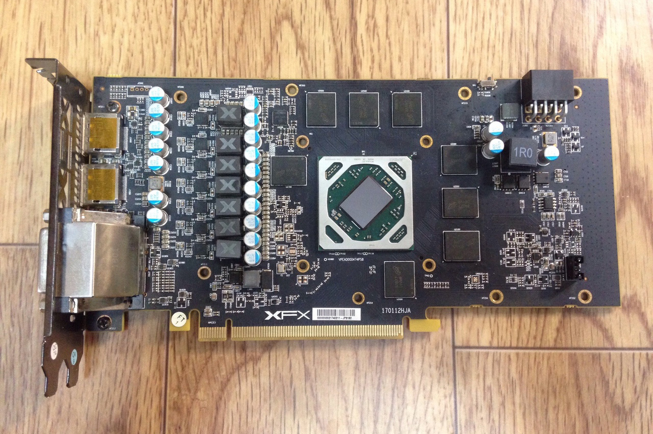 Карта xfx rx-580p8dfd6. Не знаю как загружать картинки на этот форум. Компонентов 4, скорее всего все керам кондеры, находятся сразу же над 11ти ножной PCI-E контактной площадкой со стороны GPU
