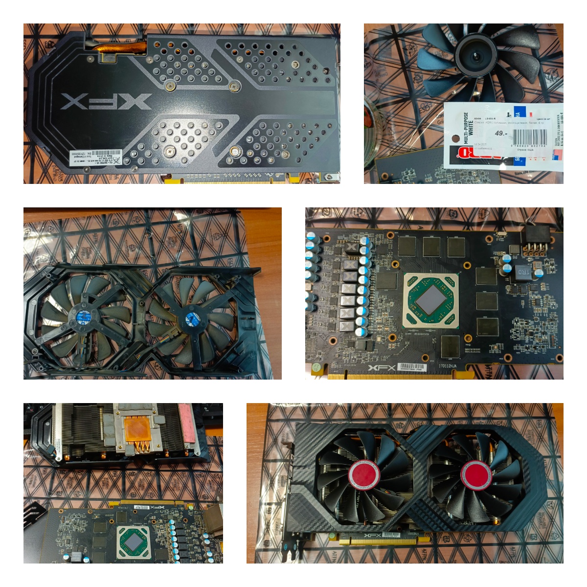 может в этом у них и проблема с высокими температурами гпу.. Поставил по итогу 950мв,а по факту это 1040мв+-. Так то вроде охлаждение выполнено не плохо,но гига по холоднее была. Я все таки решил обслужить XFX,пох на пломбу,да и вентилятор один начал дребезжать. Сделал так же как и на гиге,набил смазки в вентилятор и тишина. Гига с в ноль убитым одним вентилятором после смазки отработала больше года и не слышно было её. Прокладки я не трогал,почистил чутка и всё,на гпу МХ4 накинул,старая термуха была как камень и просто крошилась. Ну и от пыли отмыл всю. Карта не особо сильно ужаренна,думаю на работе будет служить мне до победного,ибо такого уровня карта мне для рабочего ПК хватит лет на 5 точно.