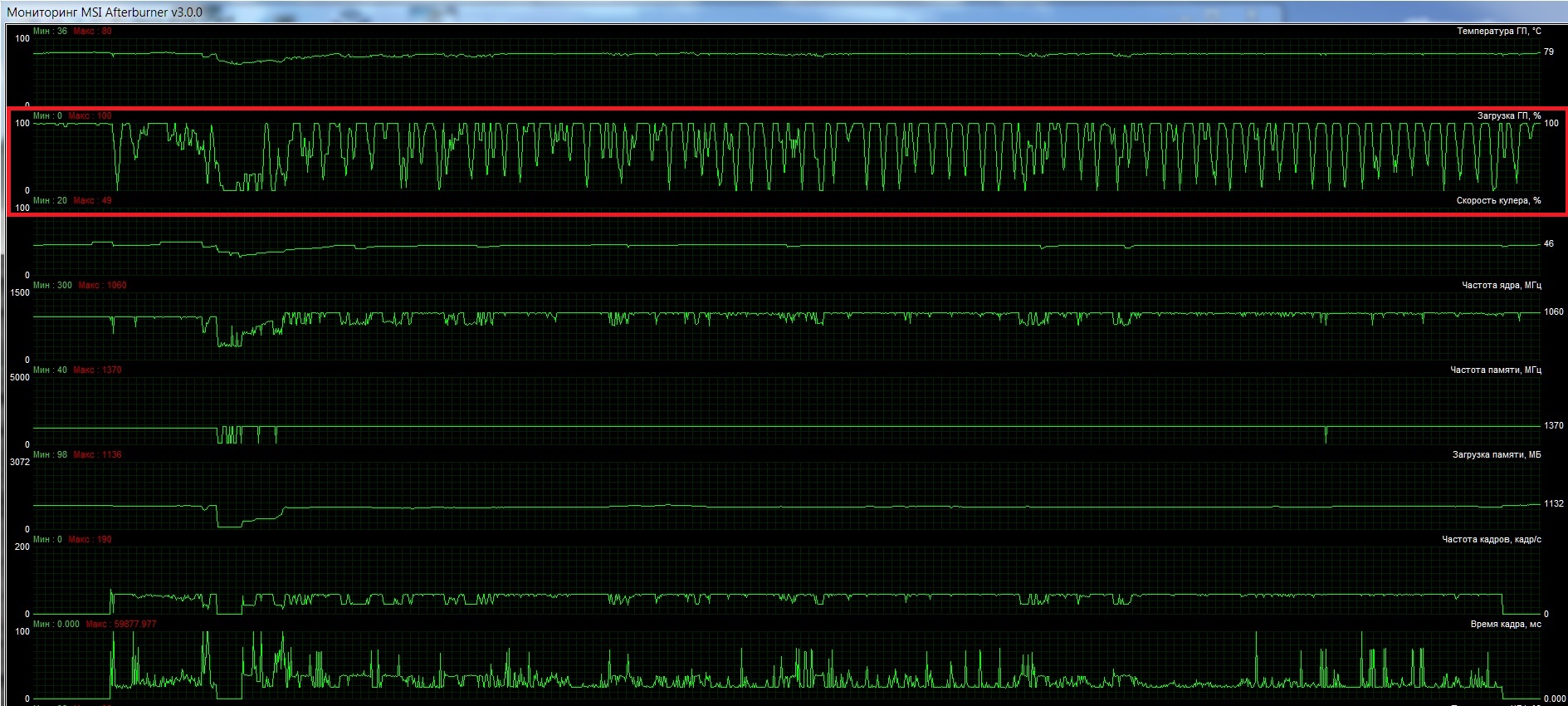 У всех после разгона график загрузки ГП в виде пилы или П-образный?