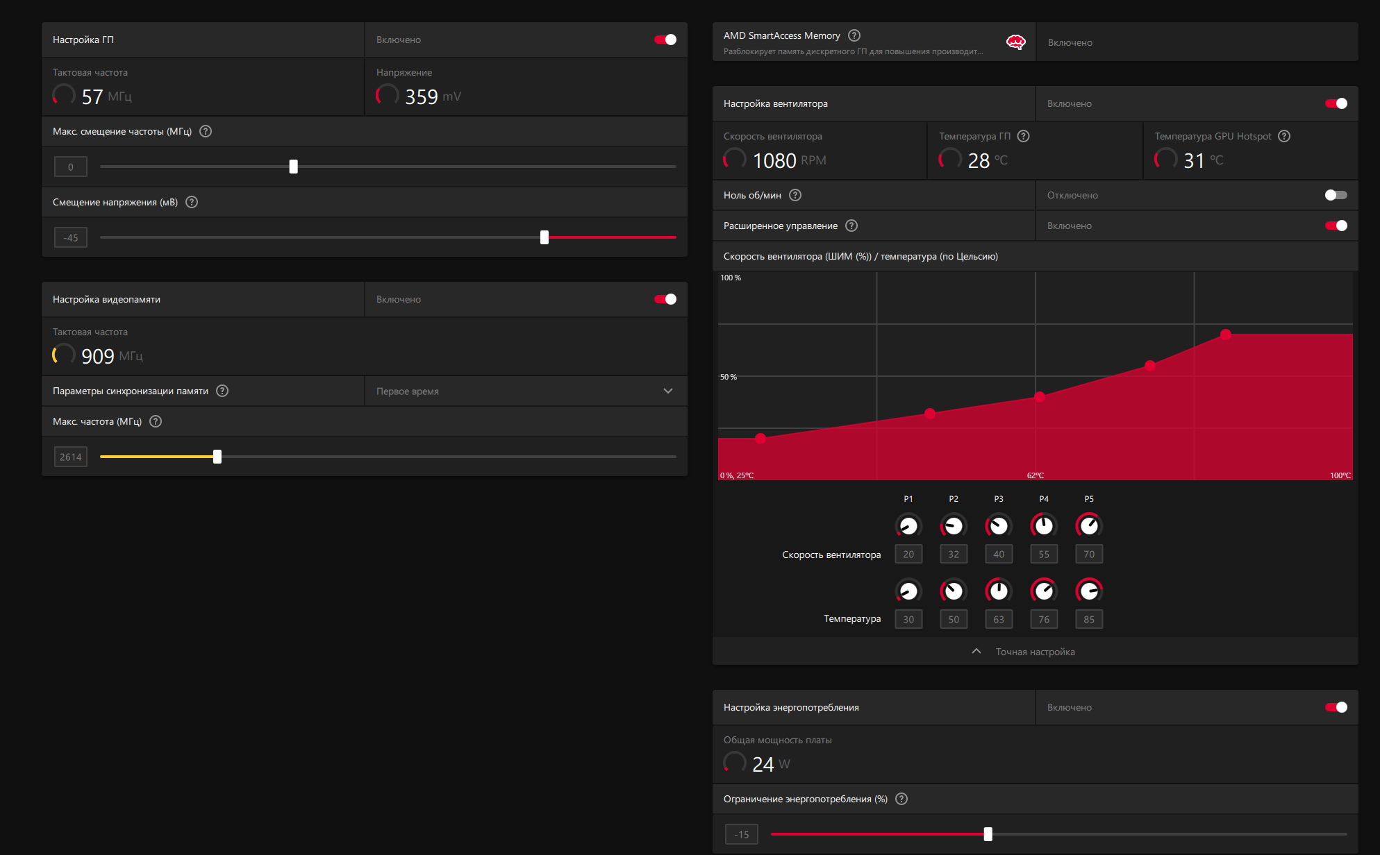 Доброго здравия форумчанам! Вопрос: Обновился я давеча на 9070xt reaper (что ближе стала доступна к покупке). Видеокарта просто огниво после 7900GRE PURE сапфир. Сейчас у меня настройки как на скриншоте: