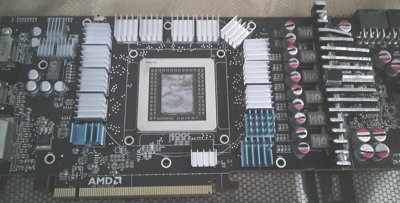 Всё таки рискнул, установив нестандартное охлаждение Arctic Cooling Accelero Xtreme III, нашёл за 1500р. Дополнительно выпилил недостающие радиаторы на чипы памяти(с арктиком идут 12шт) и на ВРМ, а то комплектые Г-образные какие-то хиленькие. За одно и корпус Zalman Z9 U3 доработал - вырезал верхний отсек для ЖД, такой монстр просто не помещался в корпус. В итоге стало очень тихо ))), но теперь стал греться воздух внутри корпуса, разогревая саму карту и другие компоненты. Решил вопрос установкой дополнительных 120-к на вдув и выдув, как раз в корпусе для них были посадочные места. Сейчас даже боковая крышка напротив видеокарты не разогревается ) Карта держит 1110 Мгц по ГП на стоковой напруге.