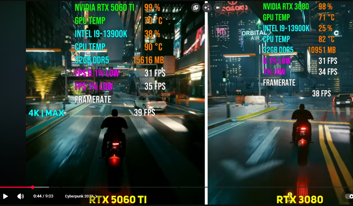 Это не мои слова, а выводы из нескольких обзоров сравнений 3060 8 vs 3060 12, на текущий момент это очень слабая карта. 5060Ti в том же киберпранке выдает как 3080...вне зависимости от версии, 8 или 16...хороший такой "огрызок" уровня 3080/6900XT.