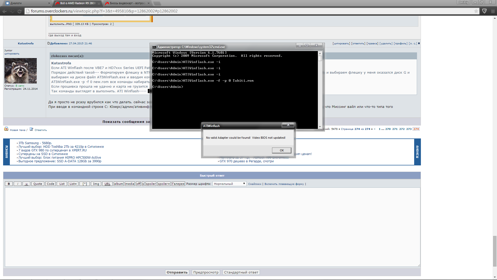 Да я просто не рсазу врубился как что делать. сейчас закинул ативинфлэш отдельно и биос в папку пользователя. При вводе в командной строке С: Юзерс/админ/ативинфлэш.ехе -i То есть команда для того чтобы узнать номер адаптера, выкидывает сообщение о том, что Миссинг вайл или что-то типа того