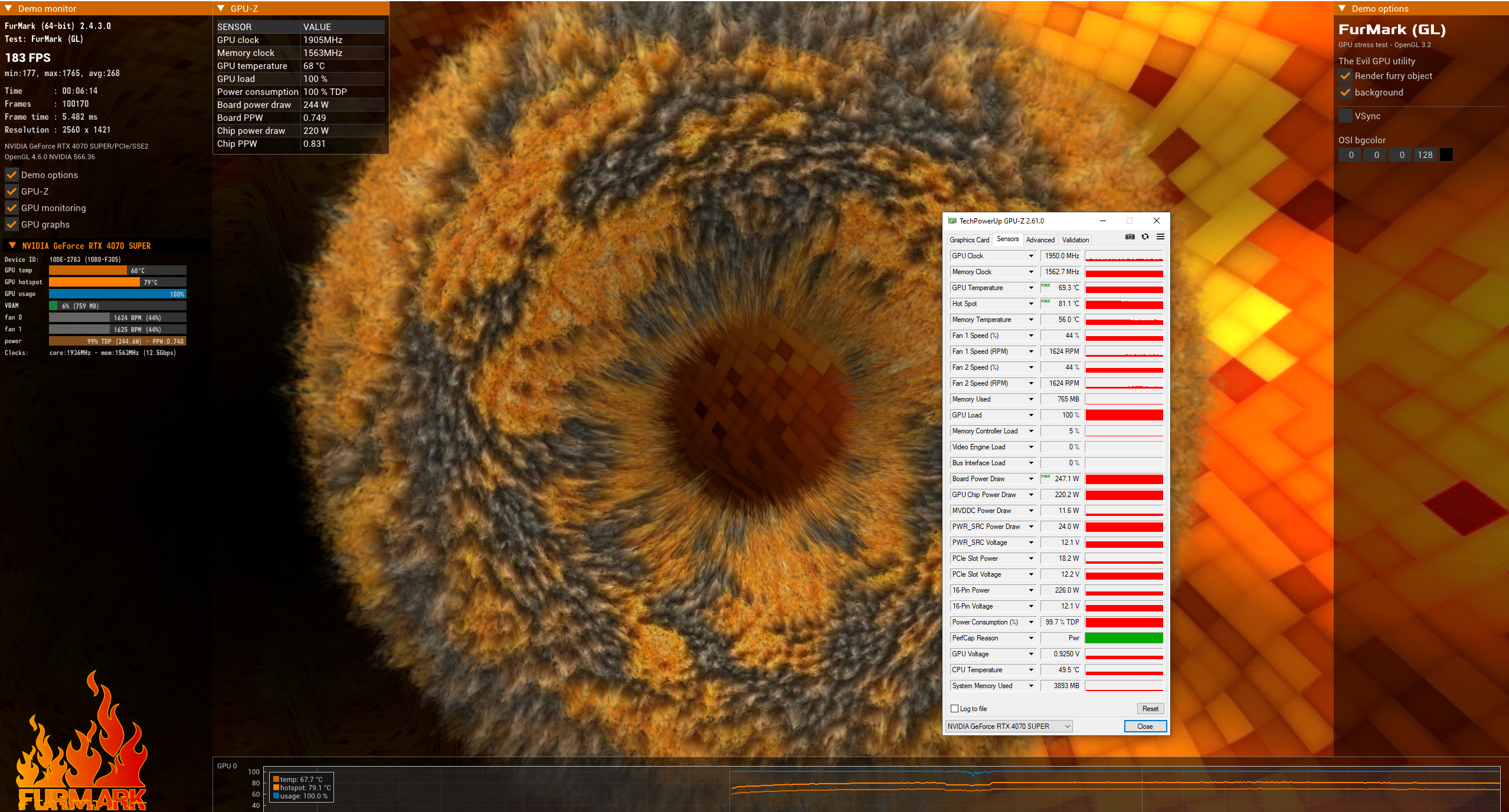 Добрый день. Подскажите, имеется карта Inno3d 4070 super x3 OC, разгон только заводской + 30 МГц, даунвольт не делал. В Furmark, OCCT частота GPU держится на уровне 2070 - 2205 МГц, в Superposition - 2760 МГц, в игре Silent Hill 2 Remake - 2835 МГц. Вопрос: почему в Furmark и OCCT так сильно проседают частоты? Максимальная температура GPU в стресс-тестах 71 градус, Hotspot соответственно 84 градуса.