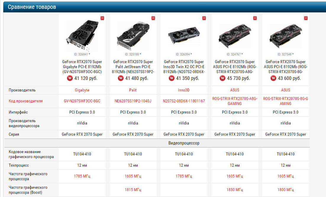 Пацаны, собрался брать GeForce RTX 2070 Super, остановился на нескольких моделях. Система с упором на тишину. 1. GeForce RTX2070 Super Gigabyte PCI-E 8192Mb (GV-N207SWF3OC-8GC)- ну хз, как вариант, но говорят не очень. 2. GeForce RTX2070 Super Palit JetStream - че т говорят текстолит тонковат и провисает, хотя многие рекомендуют, но мне кажется это из-за ее дешевезны. 3. GeForce RTX2070 Super Inno3D Twin X2 OC PCI-E 8192Mb - ну по ней вообще ничего не знаю, но может она составит конкуренцию палиту. 4. GeForce RTX2070 Super ASUS PCI-E 8192Mb (ROG-STRIX-RTX2070S-A8G-GAMING - дороже выходит, но могу все же доплатить, если это будет оправдано-все же 3 вертушки да и вендор мне нравится. 5. GeForce RTX2070 Super ASUS PCI-E 8192Mb (ROG-STRIX-RTX2070S-8G-GAMING) - я так понимаю тоже самое что и выше, только у верхнего бустится больше, потому, что чип выбран более удачно. ну или просто развод для ленивых. цена на 2к выше палита