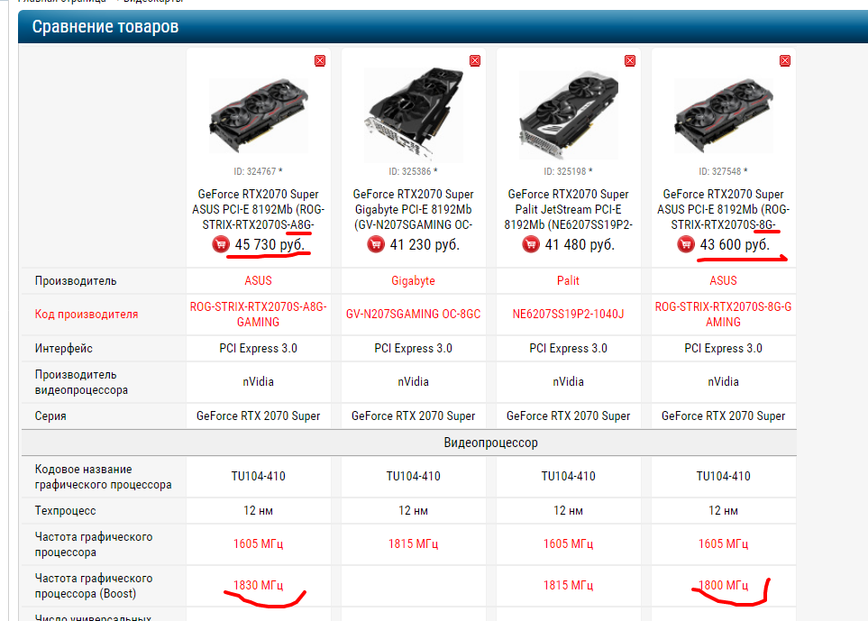 Опять я. Хочу уточнить в чем разница между 1. GeForce RTX2070 Super ASUS PCI-E 8192Mb (ROG-STRIX-RTX2070S-A8G-GAMING) и 2. GeForce RTX2070 Super ASUS PCI-E 8192Mb (ROG-STRIX-RTX2070S-8G-GAMING) более отобранный чип или просто чип тот же, просто с заводским разгоном?