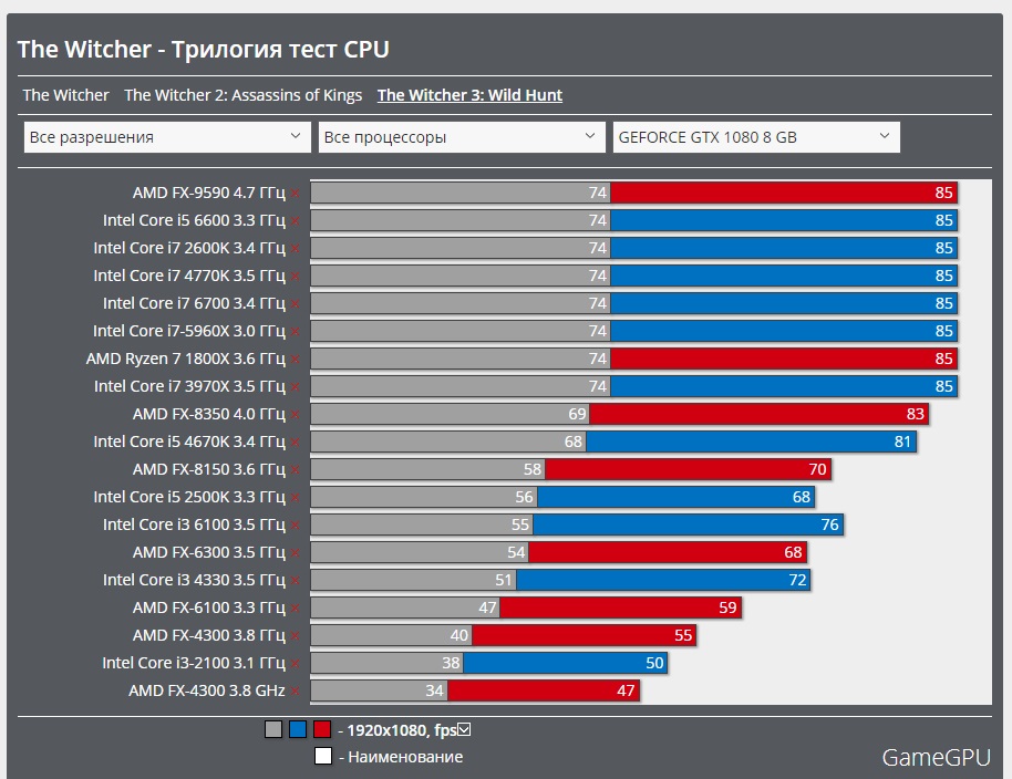 СергейФ куда ты смотрел я не знаю, во 2 ведьмаке на нём играть невозможно, даже в тесте внимательнее посмотри 1070 не раскрыта с просадками это игра 2010 года помоему, там юзается 1,5 потока и замена на 8700 полностью решает проблему с просадками, дело не в числе ядер, а их качестве...