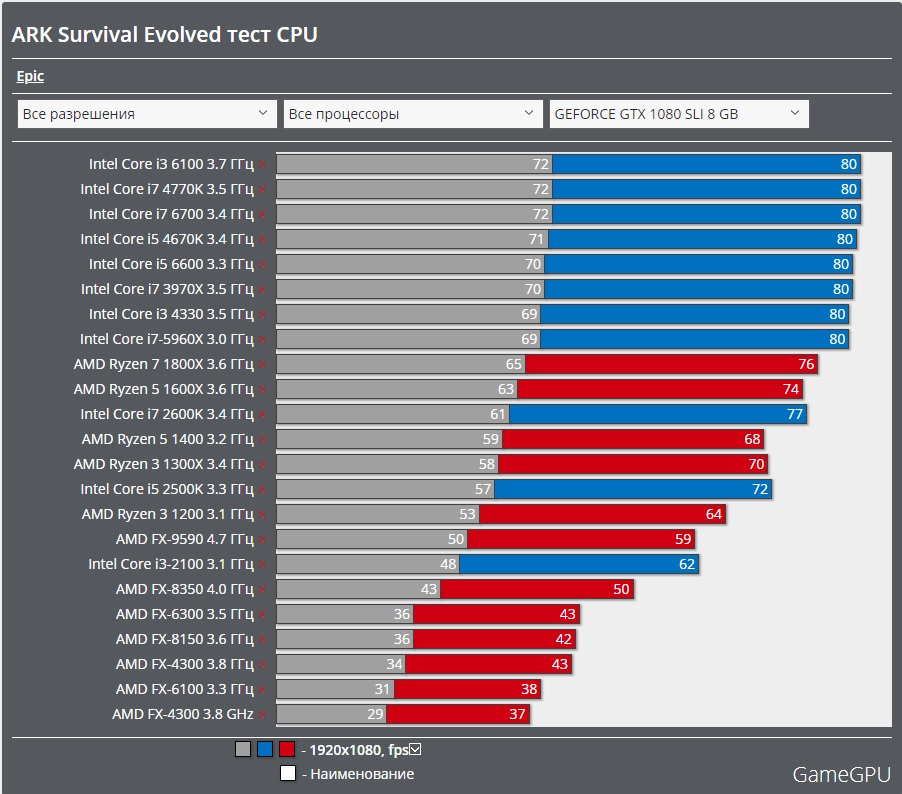 В том же арке, более современный 1800х еле выдаёт 60 фпс, при том, что сцена использовалась весьма не критично нагруженная, там можно много динозавров настроить через сотню часов игры и думаю даже у хороших процов могут возникнуть проблемы, не говоря о бревне 980х. Интел там будет нужен 8-го поколения.