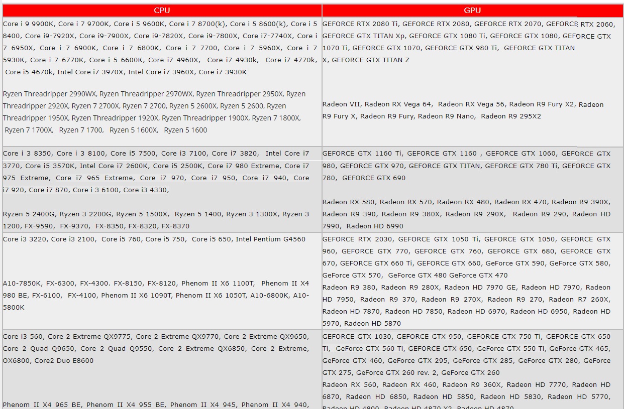 mini FAQ по выбору карт: У меня есть видеокарта (начальный уровень): RX5500/GTX1650 БП=200Wt+@12v min CPU Core I3/AMD Ryzen Теперь я могу играть в игры (Средний уровень): GTX1660/S/Ti БП=300Wt+@12v min CPU Core I5/AMD Ryzen 5 Все на максималочках (Высокий уровень): GTX2060/RX5600 БП=350Wt+@12v min CPU Core I7/AMD Ryzen 7 У меня монитор 120/144Гц (Бюджетный топ): RTX2070Super/RX5700XT БП=400Wt+@12v min CPU Core I7/AMD Ryzen 7 Могу себе позволить: RTX2080Ti min CPU Core I9/AMD Ryzen Threadripper 1900X