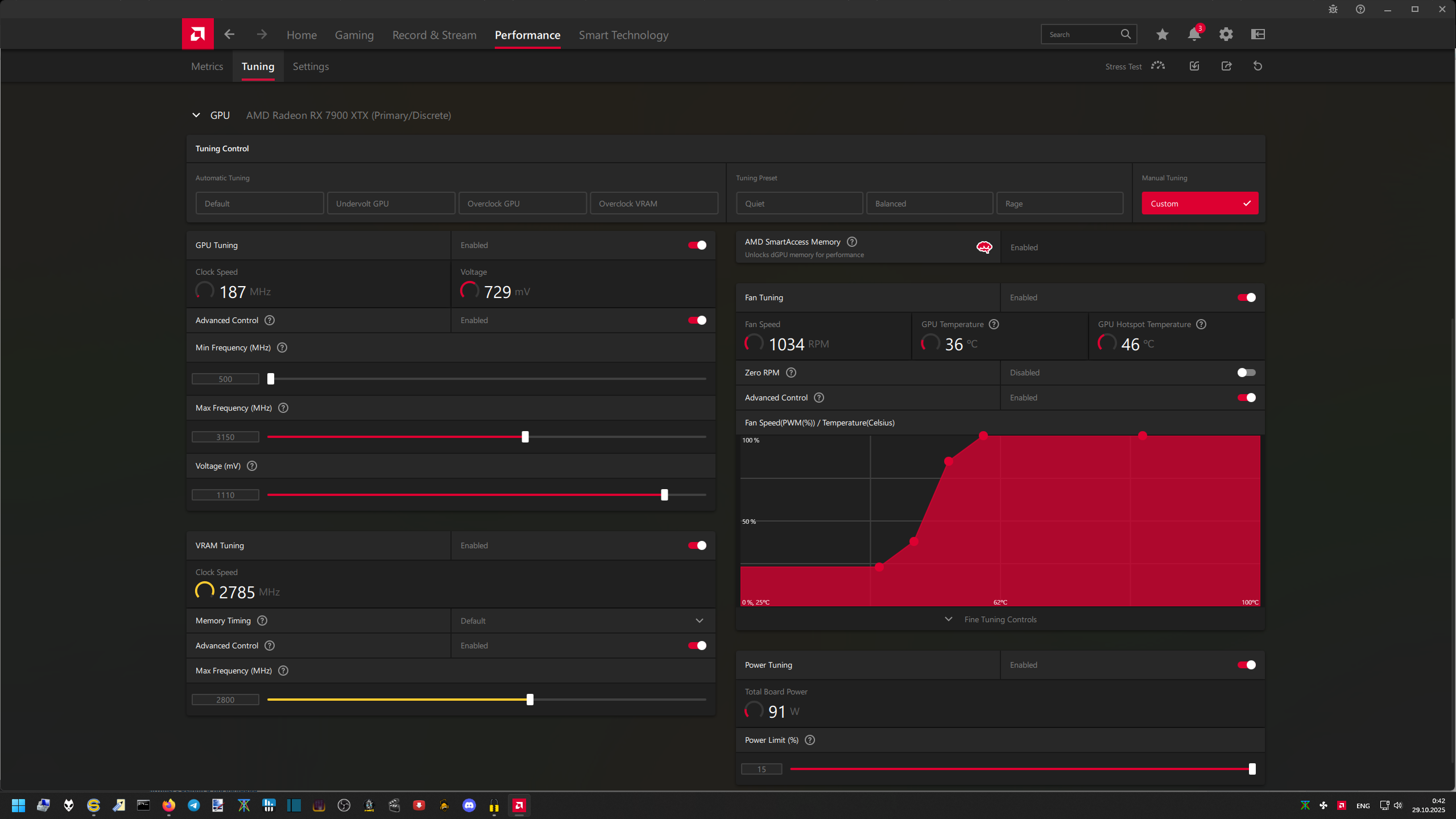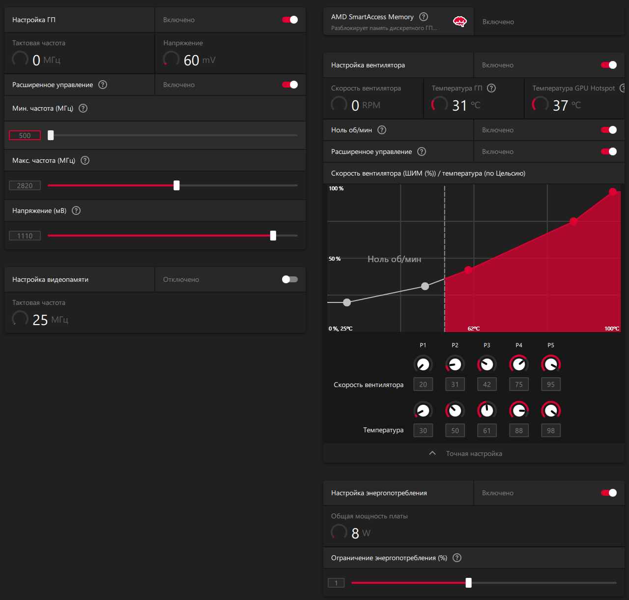Добавлено спустя 4 минуты 9 секунд: Да и в целом есть тут обладатели карты конкретно rx7900xtx phantom gaming? покажите какой у вас андревольт/разгон карты и кривую вентиляторов.У меня так, но как будто можно ещё гнать и ужимать вольтаж.