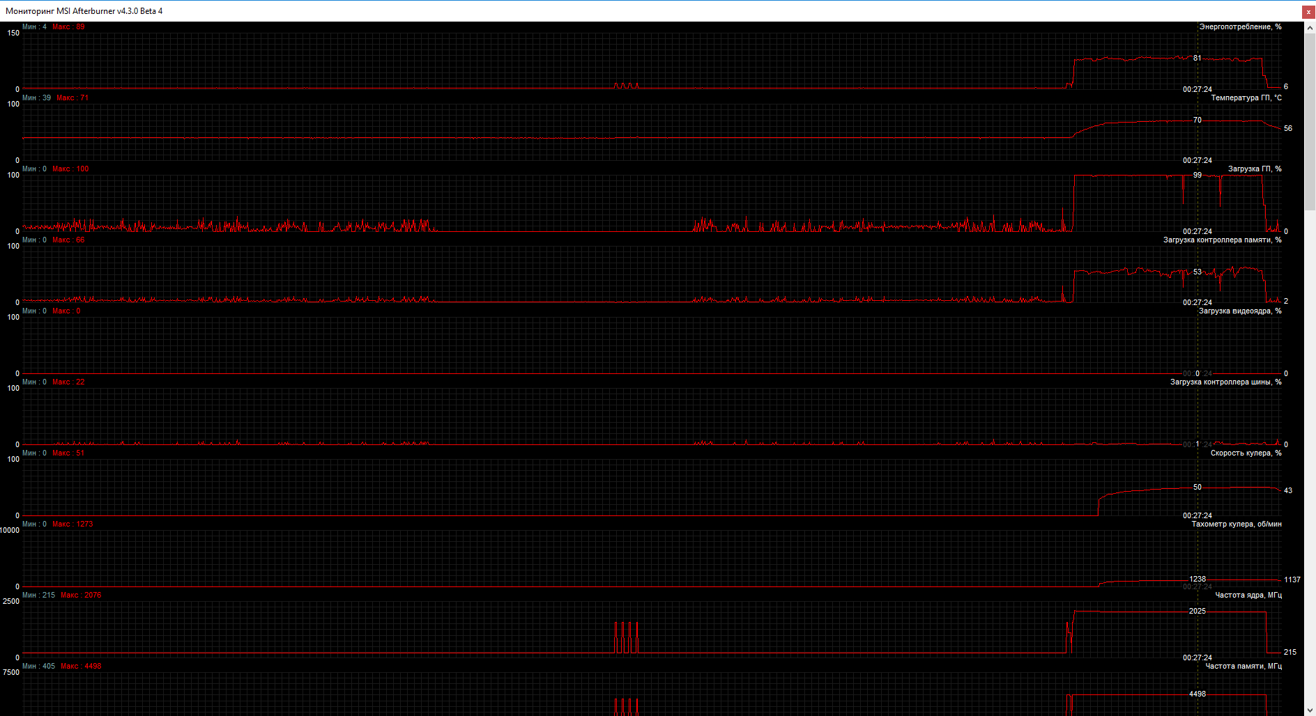 Naggash темп лимит как всегда не работает как было с 9 серией, падение вольтажа на 1070 идет на такой же температуре как и на 980, но это как бы не очень важно потому что 12 мгц роли не играют когда частоты за 2000 нужно ждать прошивальщика биоса и лочить вольтаж тогда я думаю падений не будет, но на паскале как я понял каждый шаг привязан к темперетуре и чем она выше тем ниже буст 3,0