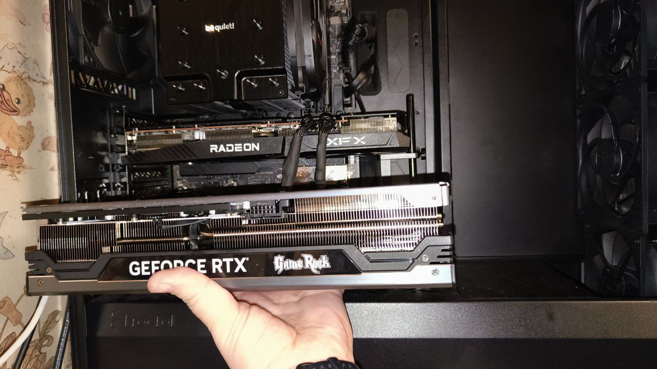 Приобрел палит ртх4080 омниблек. Дросселя не пищат. В стоке в киберпанке жрала 300 ватт. Задавил в 960 мВ и 2715 мгц частоты, +1000 по памяти. Теперь в киберпанке 230-240 вт, вентиляторы выше 30% перестали раскиручиваться.
