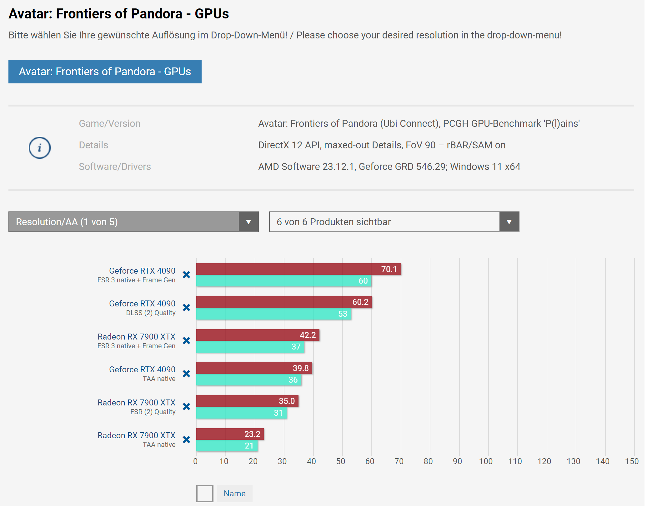 Avatar: Границы Пандоры местами демонстрируют чрезвычайно детализированный интерфейс, который также требует приличной памяти видеокарты. 8 ГБ больше не рекомендуется для максимальной детализации графики даже в формате Full HD с усилением дискретизации, должно быть не менее 10 ГБ. Редакция рекомендует 12 ГБ для WQHD и 16 ГБ для Ultra HD. Приведенные характеристики не являются гарантией того, что их хватит даже на длительное время воспроизведения. Кроме того, стоит помнить, что игра очень чувствительна к измененным параметрам графики. Для создания снимков экрана редакция Ultra HD несколько раз переключала параметры трассировки лучей. После нескольких переключений GeForce RTX 4080 подтвердил это только с однозначной частотой кадров до сбоя – 16 ГБ памяти было переполнено, потому что она никогда не стирала все ненужные данные при переключении.