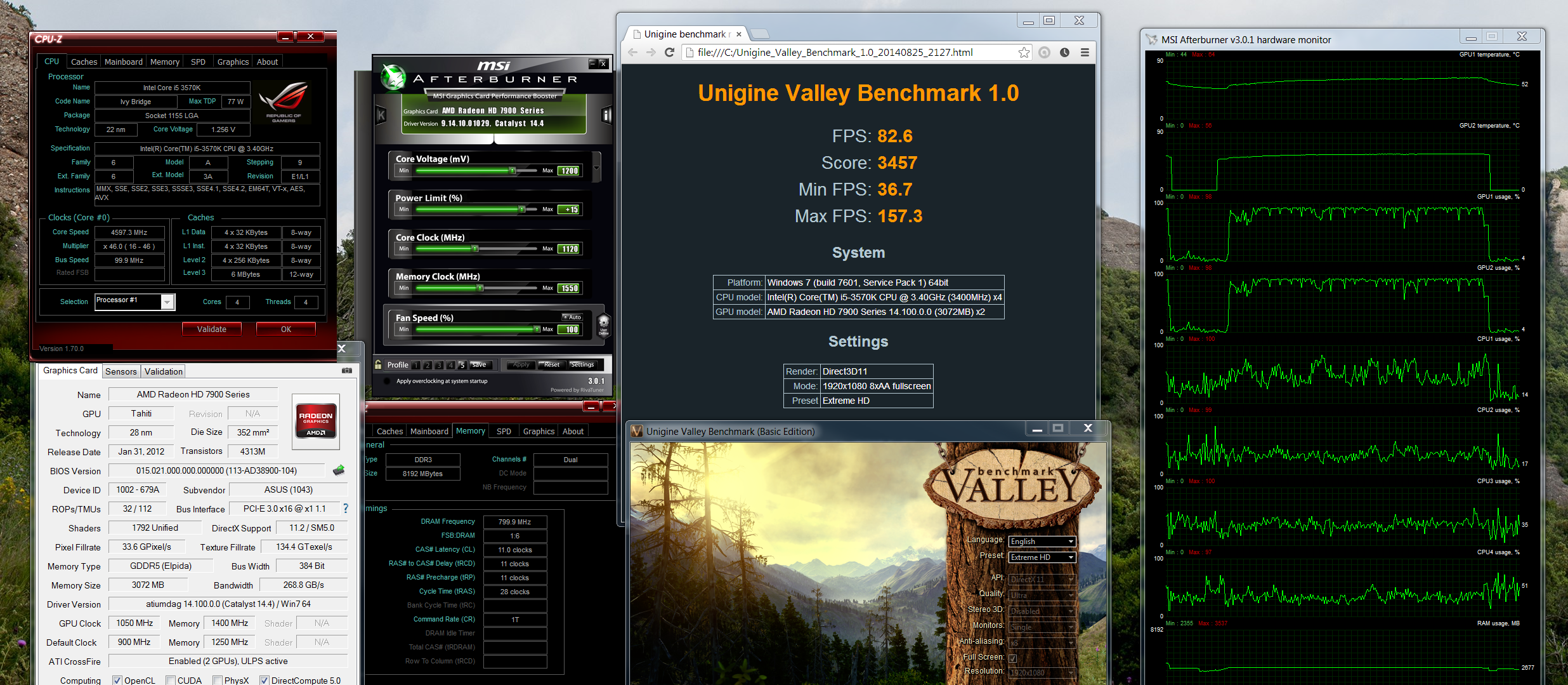 Прогоните 3dmark или Unigine в FHD. Посмотрим, какие частоты и какие очки. Так я смогу напрямую сравнить... При проце на 4400-4700 (айви) у меня HEAVEN (Core i5-3570K @4400МГц R9 280 + HD 7950@1050/1300) 14.4 = 1706 VALLEY (Core i5-3570K @4600МГц R9 280 + HD 7950@1120/1550) 14.4 = 3457 FIRE STRIKE (Core i5-3570K @4400МГц R9 280 + HD 7950@1050/1450) 14.4 = 10930 FIRE STRIKE EXTREME (Core i5-3570K @4400МГц R9 280 + HD 7950@1100/1380) 14.4 = 6135 Кроме "текстуры - оптимизация на скорость" в дровах ничего не менял. Понятно, что результаты получены из 15 прогонов, но мы можем хотя бы сравнить на непроцессорозависимом тесте при одинаковом положении ползунков