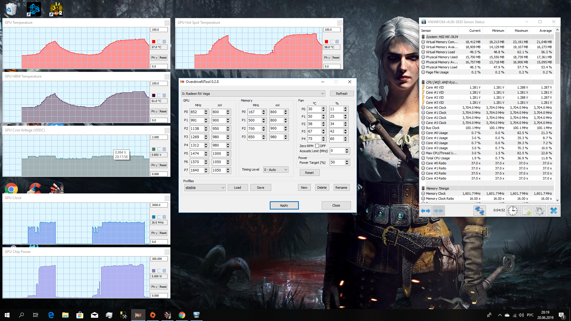 ыставляю Р6 Р7 как советуют гайды - выставленных частот не достигает и напряжение ниже того что я выставил. HBM2 память (Хуникс) вообще отказывается разгоняться, уже при 850 Мгц
