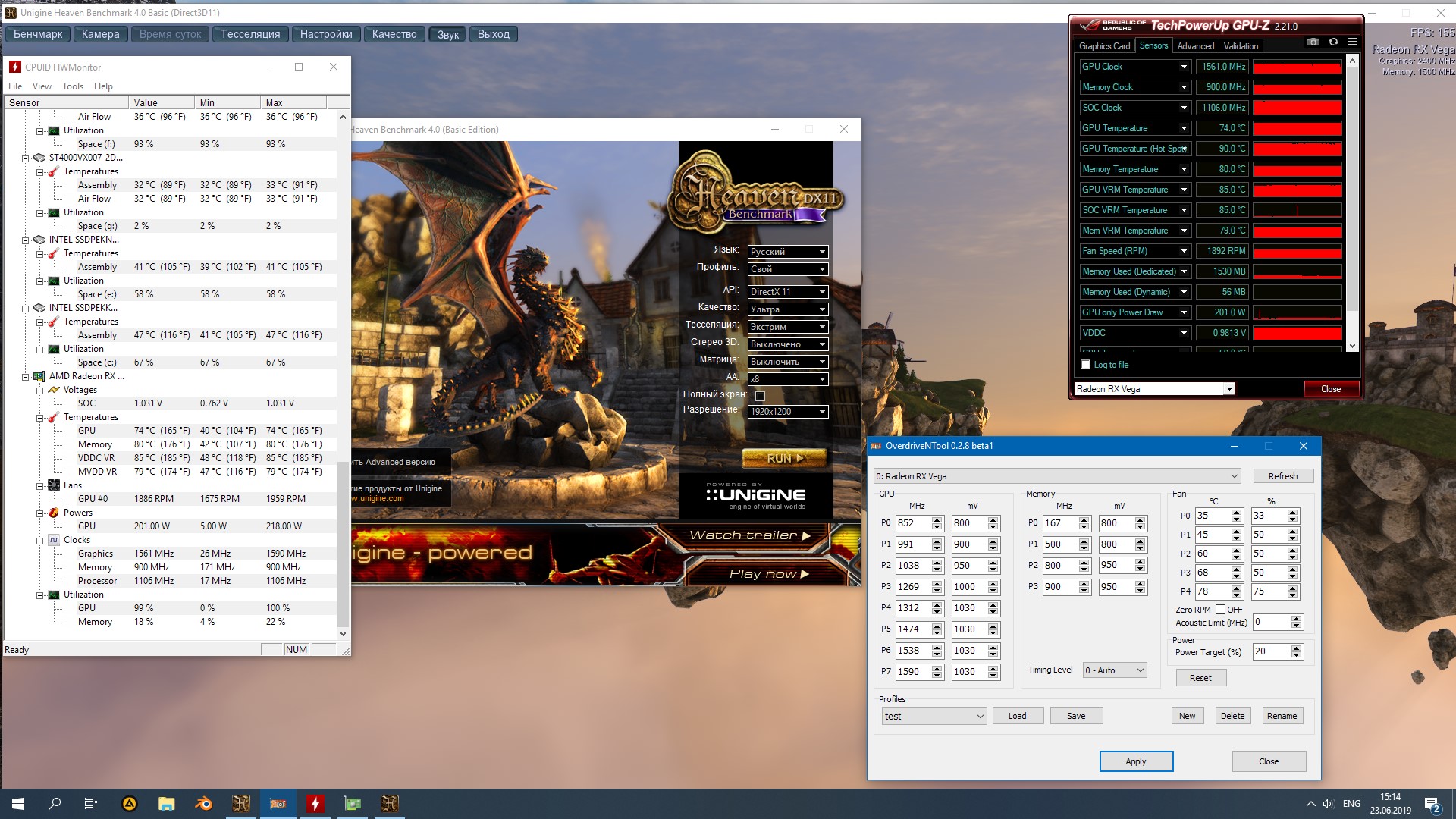 всегда было интересно сравнить температуры с одинаковыми настройкми от разных вендоров. у кого имеется вега red devil, гига, нитро - если есть время погоняйте свою в хейвене минут пять хотя бы, с настройками что в скрине