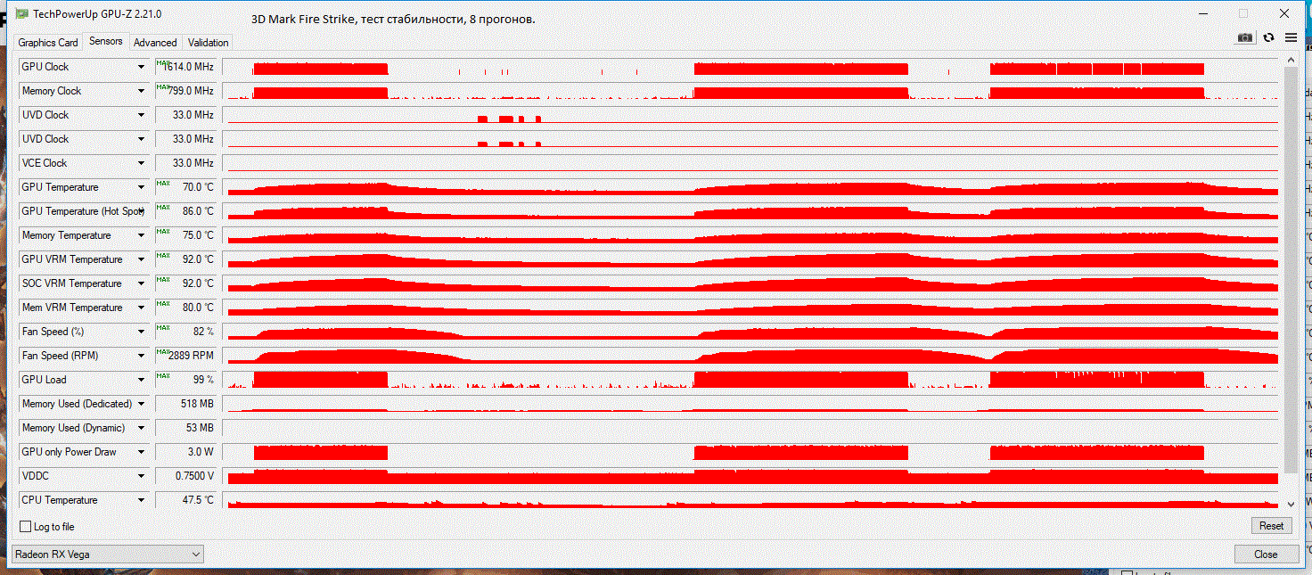 Всем привет. Мой небольшой отзыв. Система R5 2600, 16 GB, 600W, FHD, корпус Zalman Z3 Plus (2 на вдув, 3 на выдув). Приобрёл ASUS ROG STRIX VEGA 56 (до этого была ASUS DUAL 1060 6 GB). Перед покупкой немного посмотрел форумы, прочитал про даунвольт и прочее. Сразу даунвольтить не стал, настройки в ваттмане не трогал, зашёл в игру WOT (максимальны настройки FHD). Час игры и температуры GPU VRM и SOC VRM поднялись до 110 градусов цельсия, GPU - 75. Поставил верт. синхр., чуть поднял обороты вентилятора (до 65%) и температура GPU VRM и SOC VRM стала 55-65, GPU - 60. В других играх (GTA 5, Whitcher 3, BF 5) без верт. синхр. не играл, температура в них также была 60-65 градусов. Сейчас решил даунвольтнуть с помощью OverdriveNTool. Проверил в тесте стабильности Fire Strike в 3D MARK - 8 прогонов. Стабильность 99,8 %. GPU VRM и SOC VRM - 90-92 на финал 8 прогона (и скорее всего поднимутся ещё выше с большим кол-вом прогонов, я просто не стал мучить систему), GPU - 70, GPU HOT SPOT - 85. В играх примерно та же история, что с даунвольтом что без (единственное что с даунвольтом не так быстро растёт температура). Вывод: температуры VRM удручают. Возможно на моей видеокарте та самая кривая прокладка на VRM, но снимать охлаждение и её менять я естественно не буду, т.к. не хочу чтобы ВК слетела с гарантии. Может ещё знающие люди подскажут правильно ли был проведён даунвольт, или ещё где-то что-то не докрутил.