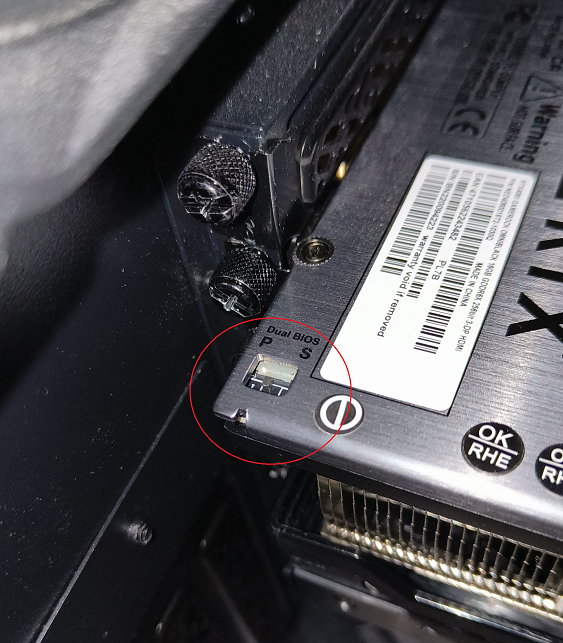 ЭЭЭ, наитупейший вопрос. По сайту производителя на моей карте заявлено два биоса А где он у карты от палит? Открыл крышку компа, осмотрел карту - не вижу. Где он, кто подскажет?
