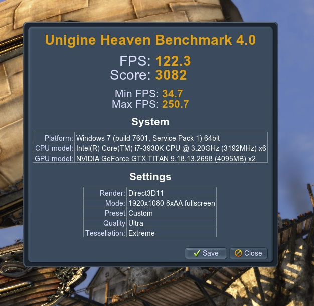 В Heaven-Valley мин. fps может быть и 10fps, картинка на секунду зависает и показывает 8fps-10fps, а 34fps для одной gtx 780 это я считаю нормально, с учётом данного теста.