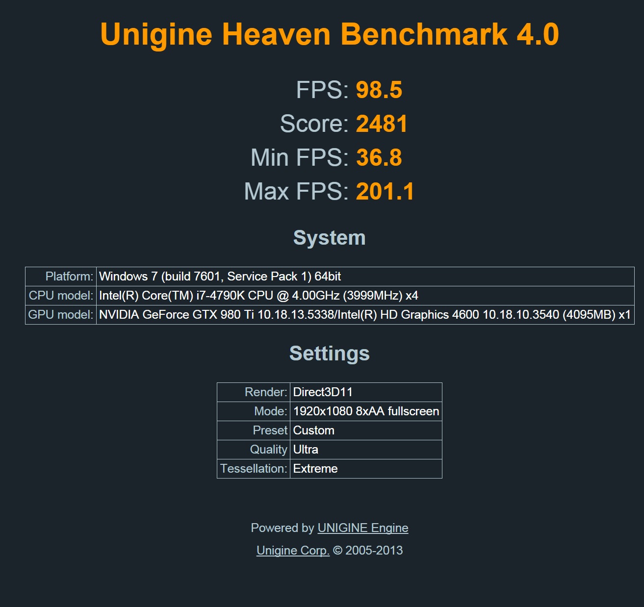 Давно еще тестил крайзис 3 на своем 2600k (4.4), на втором уровне, выдавал ~75 фпс, а 4770 на еще большее должен быть способен. Но именно в крайзисе 3, под 2x980 TI, нужен шестиядерник, иначе возможен недогруз слая.