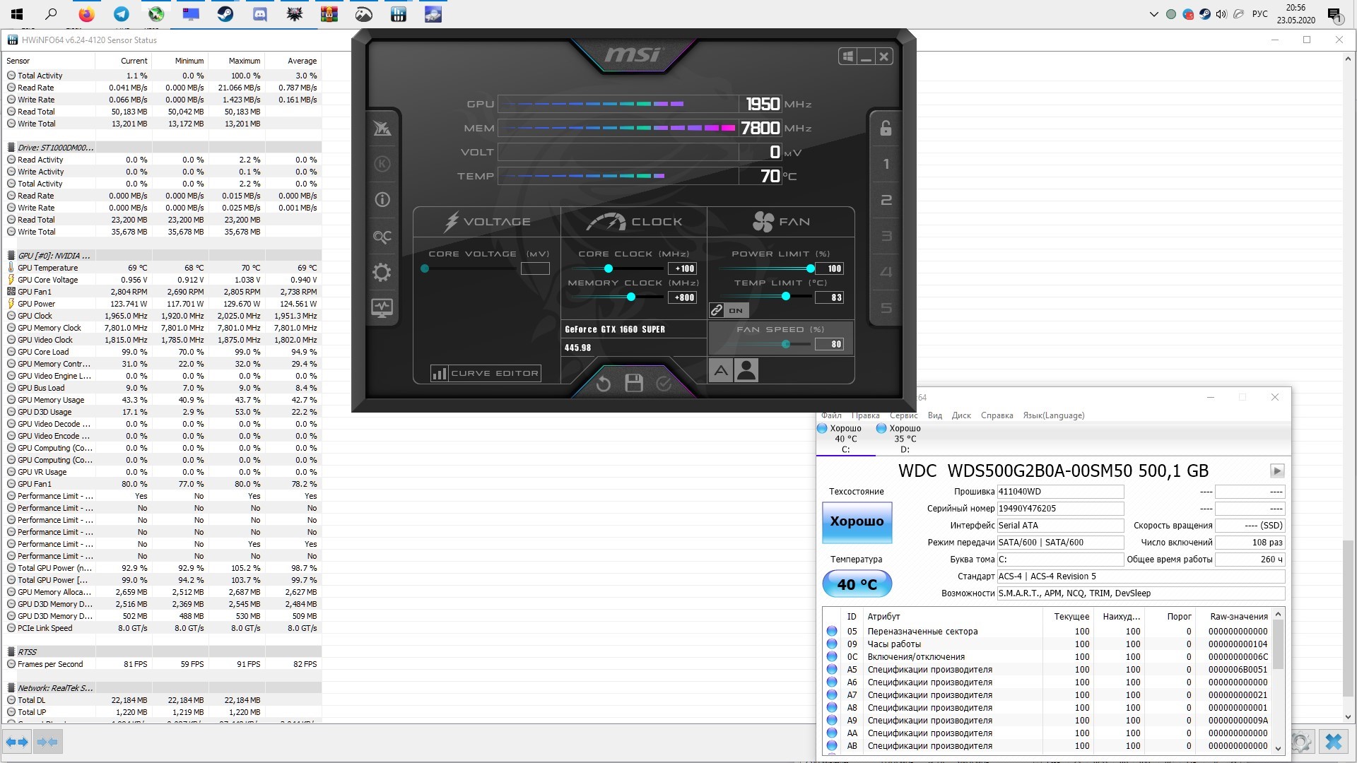 В ведьмаке 3 тоже всё супер, выше 70 пока не нагревалась (боковое окно корпуса закрыто)