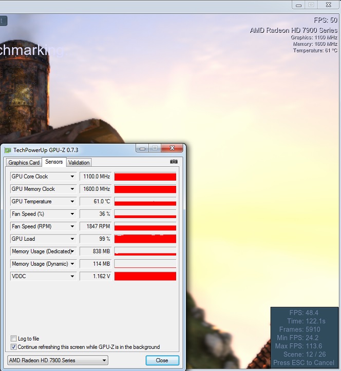 Раз игр требовательных один фиг нет пока, решил остановиться на 1100/1600. Уменьшил напряжение по чипу с 1,170 до 1,162. Температура малость упала и стабильно держится