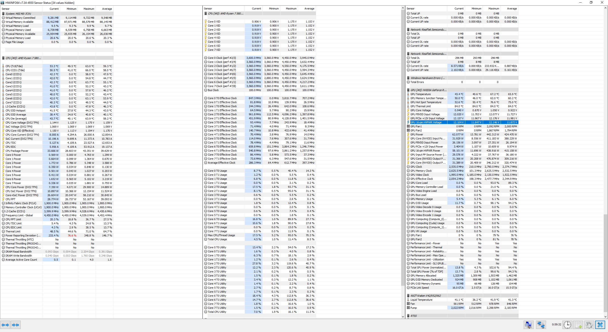 Вот скрин после часового прогона Фурмарком. Собственно, беспокоят температуры и просадки по 12V, что на самом PCE-E, что на доп. питании. Это же сильные просадки? БП под замену или нет? Кстати, насчет несчастного разъема 12HPWR - во время тестирования он был довольно горячий, но как понять: то ли он горячий сам по себе, то ли тупо от радиатора видеокарты нагрелся, потому что радиатор был очень горячий, как и бэкплейт, кстати, меня это тоже беспокоит, потому что тепло с этого всего идет как раз на оперативную память, которая и так греется, потому что в разгоне. И на радиатор процессорной СВО тоже тепло идет, а процессор и так довольно горячий...
