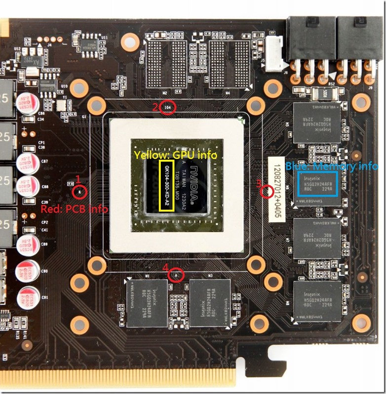 или описание текстом примерно так: "1. Видеочип - G92-270-A2 2. Память - Qimonda HYB18H512321BF-10 HVV07109 3. Вокруг чипа - 8 5 92 A", однако прошивка может и не повлиять на ситуацию.