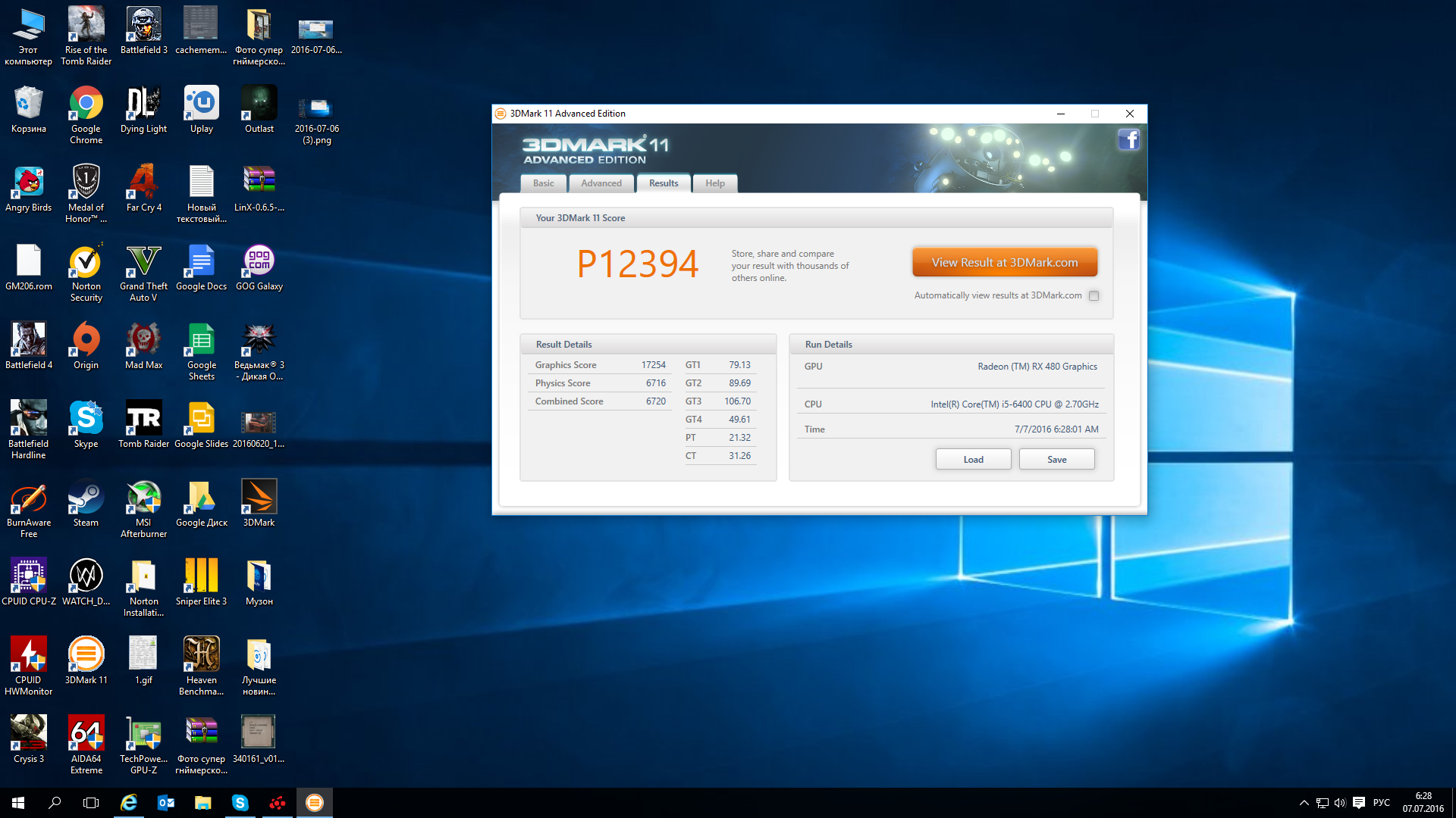 Прогнал 3Д марк 11 с процем i5 6400 все без разгона